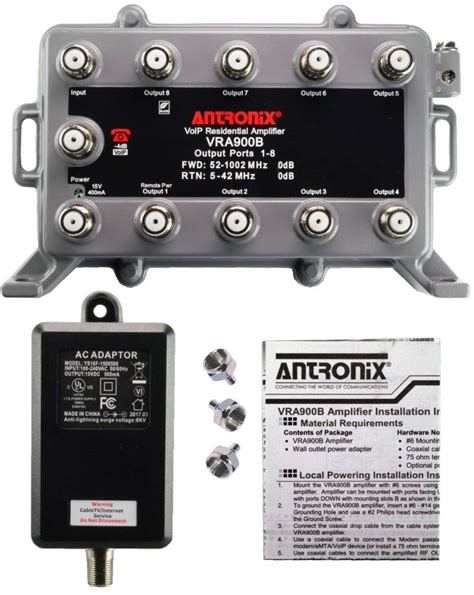 newegg 9 Port Bi-Directional Cable TV Splitter Signal Booster/Amplifier with Active Return Zero Signal Loss VoIP Telephone Bypass Port and F59 Terminators Antronix VR900B/AC